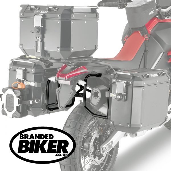 These Givi PLO6710CAM Pannier Holders Aprilia Tuareg Rally 660 2025 on models are designed to accept Givi MONOKEY CAM-SIDE Motorcycle Panniers (such as Trekker Outback metal panniers) and can be be fitted on their own in combination with the Givi SR6710 Rear Rack Carrier Aprilia Tuareg Rally 660 2025 on models (allowing a top box to be fitted) and can be made Rapid Release Pannier Holders by using a Givi 10RKIT Rapid Release Motorcycle Pannier Holder Kit.