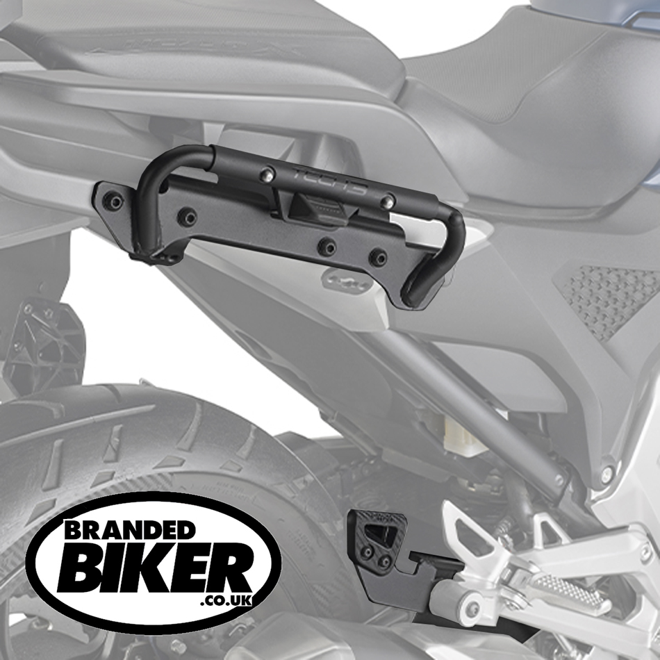 These Givi PX1192 Tech 3 Pannier Holders Honda NC750X 2021 on models, replacing the Givi PLX1192, are designed to accept a pair of Givi V37 Monokey Panniers only. The MONOKEY TECH 3 system uses a discreet upper locating rail and a lower bracket that is attached to the inside of each rear pillion foot peg instead of the larger traditional pannier rails to locate and hold a Givi V37 pannier on each side. These V37 pannier rails are designed to work only in combination with either the Givi 1192FZ Monorack Arms Honda NC750X 2021 on models (for a plate and top box fitting) or with the Givi 1192KITPX Pannier Holder Bridging Kit Honda NC750X 2021 on, where a top box is not required. The 2 pannier rails, the instructions and all the necessary fittings and fixings are included.