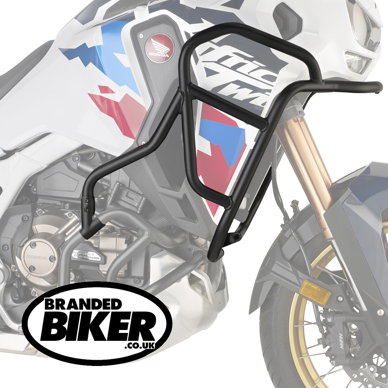 These Givi TNH1205 Engine Guards Honda CRF1100L Africa Twin AS 2024 on models, including DCT and Manual transmission models, are made from 25mm steel tube designed to offer an additional point of contact preventing serious damage to your engine casing and side fairings. These Upper engine guards can only be fitted in combination with the Givi TN1178 Engine Guards Honda CRF1100L Africa Twin AS 2020 on models. The 2 Upper guards, mounting brackets, the instructions and all the necessary fittings are included. Due to the close tolerances it is recommended that these Engine Guards are fitted by a competent mechanic.