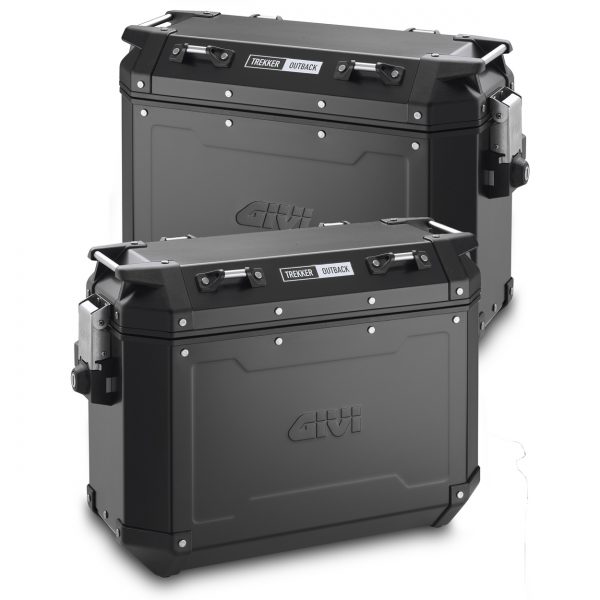 These Givi Trekker Outback Panniers Pair Black 37L 37R, OBKN37BPACK2, are a pair of sided panniers, in the Satin Black Line finish, designed to fit on to Givi PL_ _ _CAM or Givi PLR_ _ _CAM pannier holders only. As Givi Trekker Outback Panniers are sided; this kit includes a 37 litre left side and a 37 litre right hand side, as you are sat on the motorcycle. These panniers are designed to fit onto motorcycles that do not have an offset pannier rail, for example motorcycles that have a high level exhaust on one side, and when fitted these two panniers will give the same width from centre line to the outside of the panniers. These side cases are left and right handed with a unique advantage over other manufacturers in that the lids can be hinged or taken off entirely for easier packing. These lockable side hard bags have the hinges and the locking mechanism set away from the outside for better protection and durability.